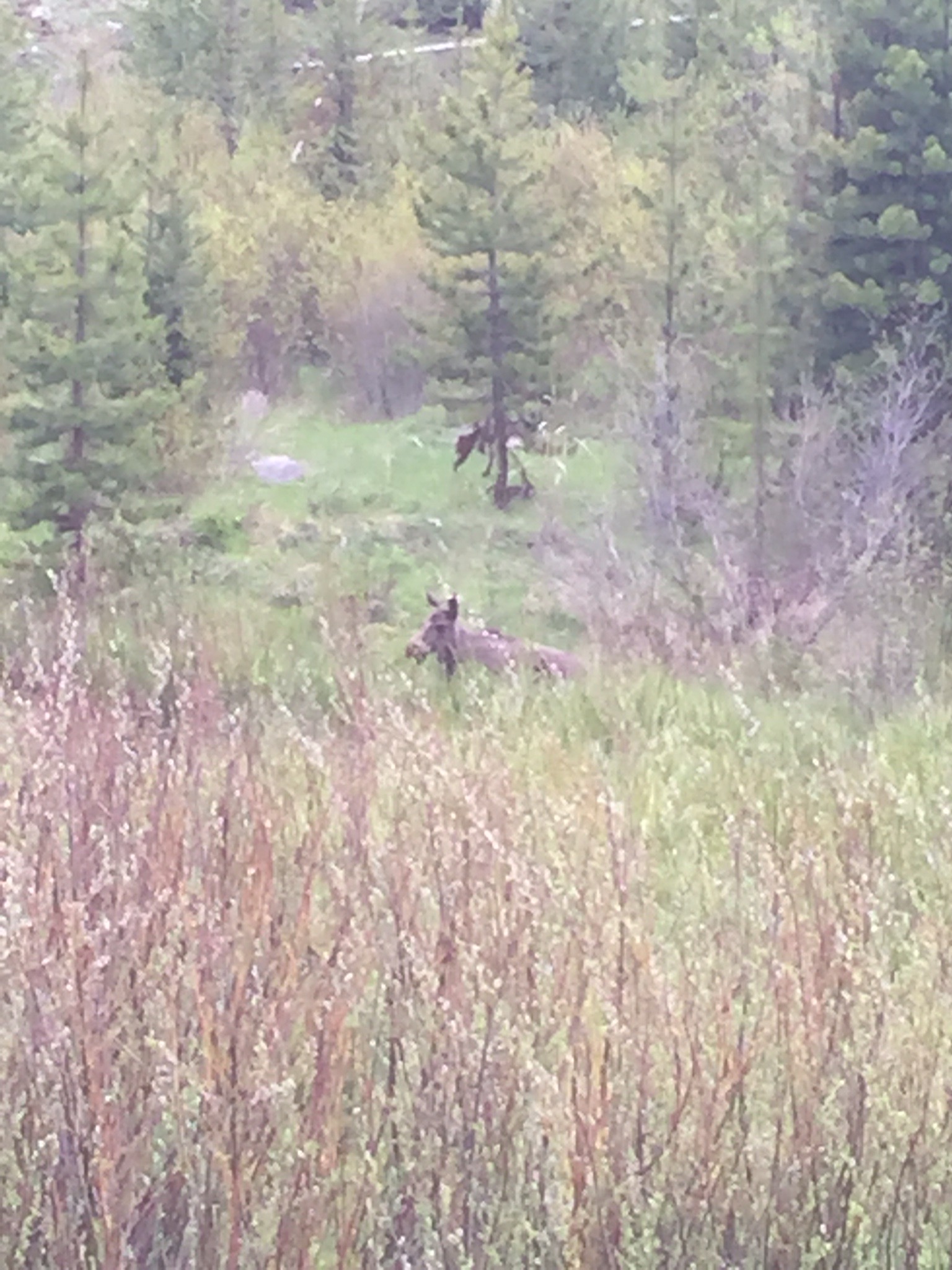 The drive to Greybull was serpentine to say the least. As we were getting out of the park we were lamenting the lack of wildlife when we saw people on the side of the road. We pulled off to see and there were moose! A mom and baby. 😊 luckily they didn’t bolt when we released the air brake.