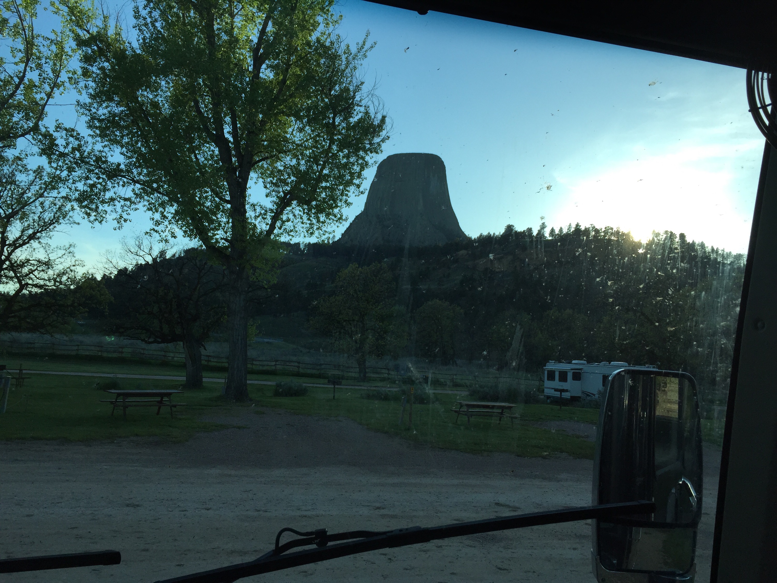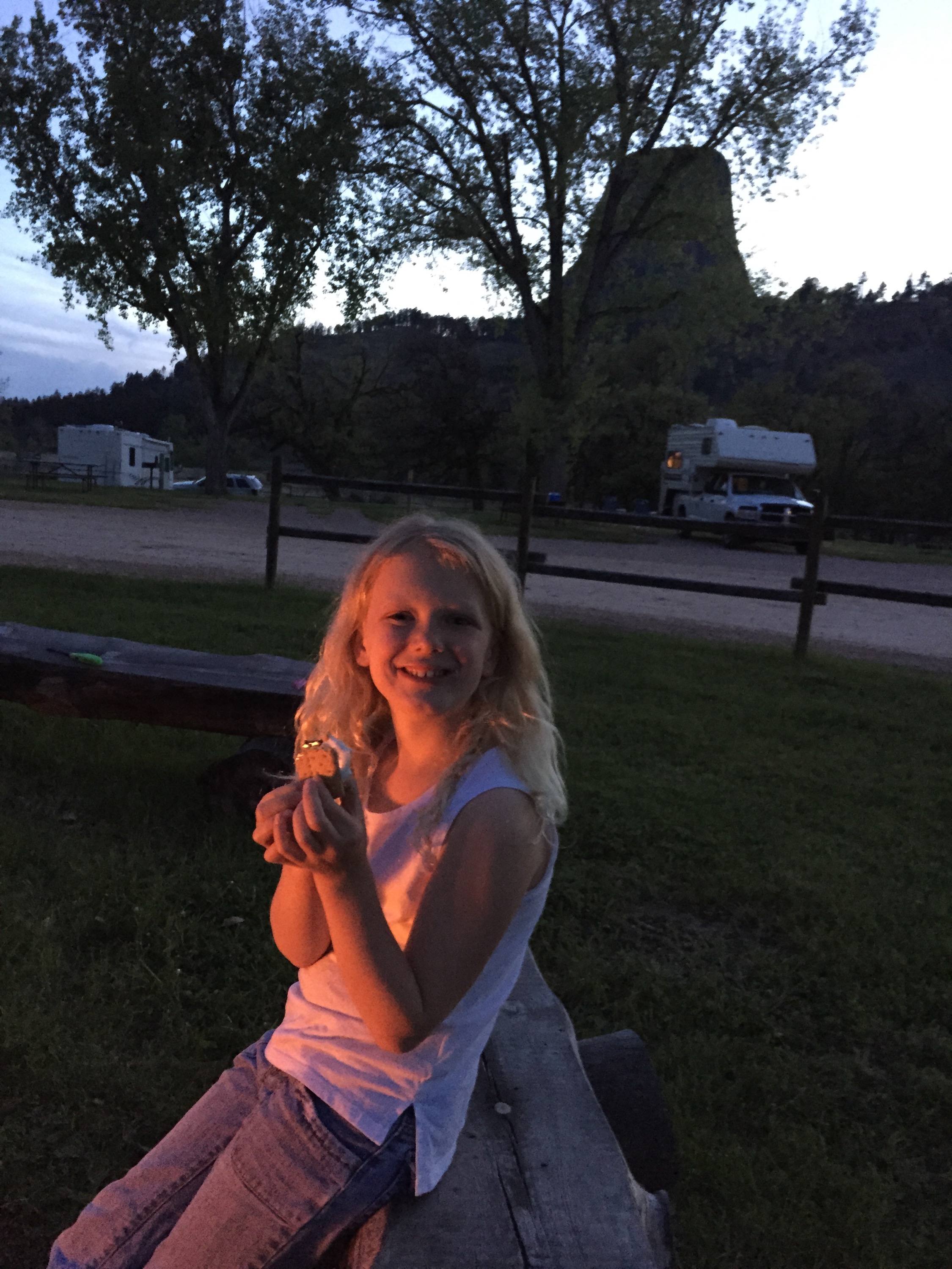 Yesterday we were in a mad rush to get my nana and papa to the airport. We drove for a little then went to the weirdest place ever it smelled like a cigarette butt and was the most hippie style place. Lucklie for me I brought my own food. The food looked ok. When we rushed out it was there it was histarical. I got 1 of my nana’s cookies. We got them the there in time. Then right when we left we saw a pronghorn. Then we went to Devils tower for a few min and we got our Jr ranger books. We started them in the RV. When we arrived we went to the playground for a while then we went back. We set up a fire and a kid asked if he could help we said sure. He was 8. The fire was a success. We burnt a bunch of marshmellos I burned 6 at a time. Then we went back took a shower and went to bed. Then today me and zo hiked up rocks as high as we could. Then we went to Crazy Horse. All four heads of Mt Rushmore could fit in it! It still isn’t finished. Then we went to Mt Rushmore. It was cooler than I thought it would be. We finished the jr ranger and got the badge. And now were underway to badlands.