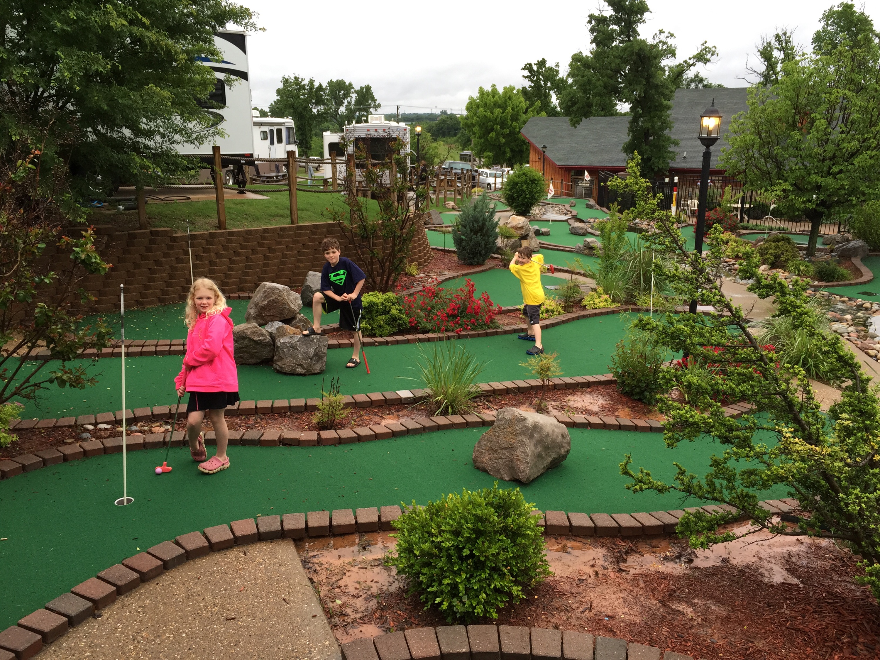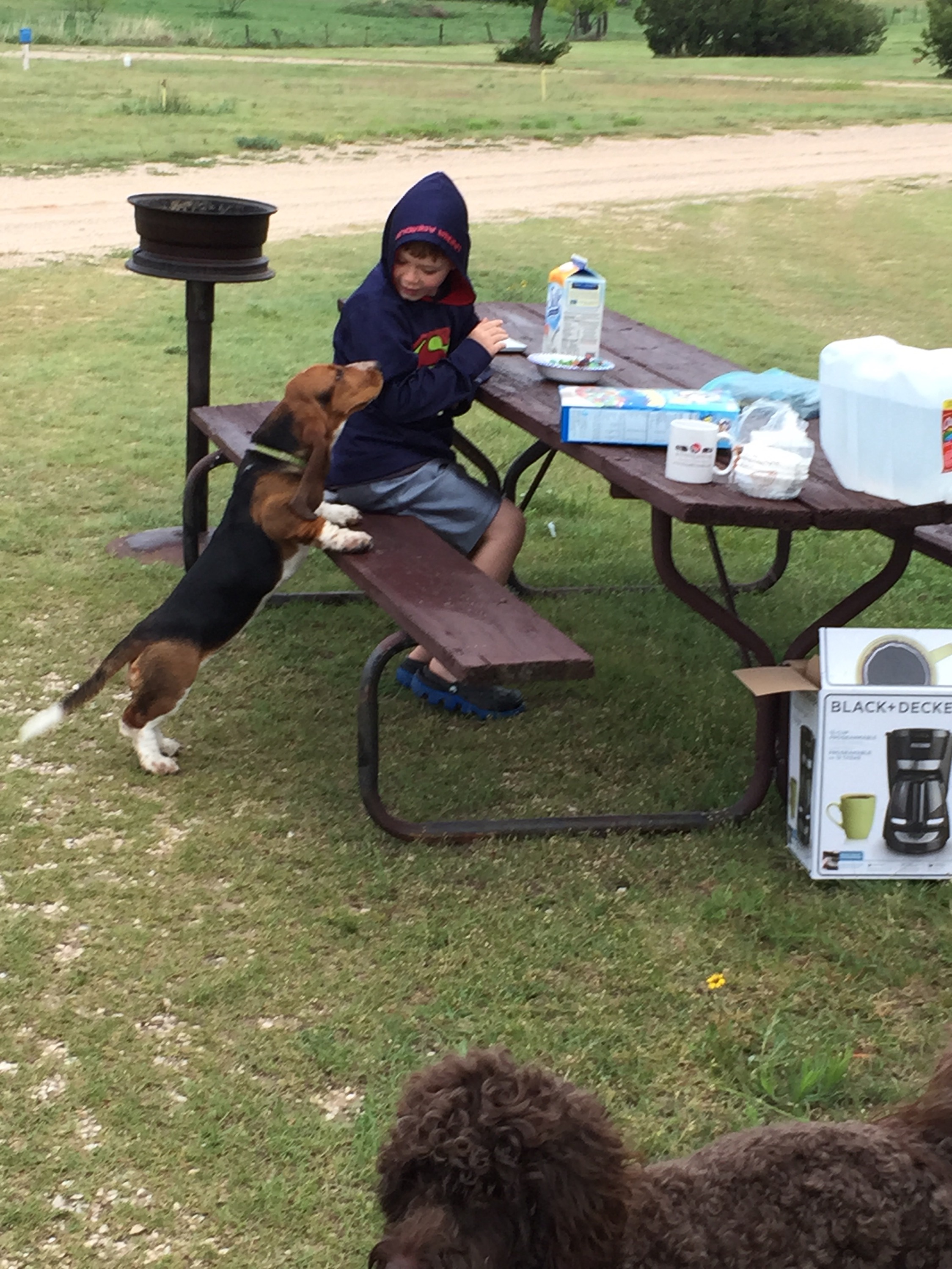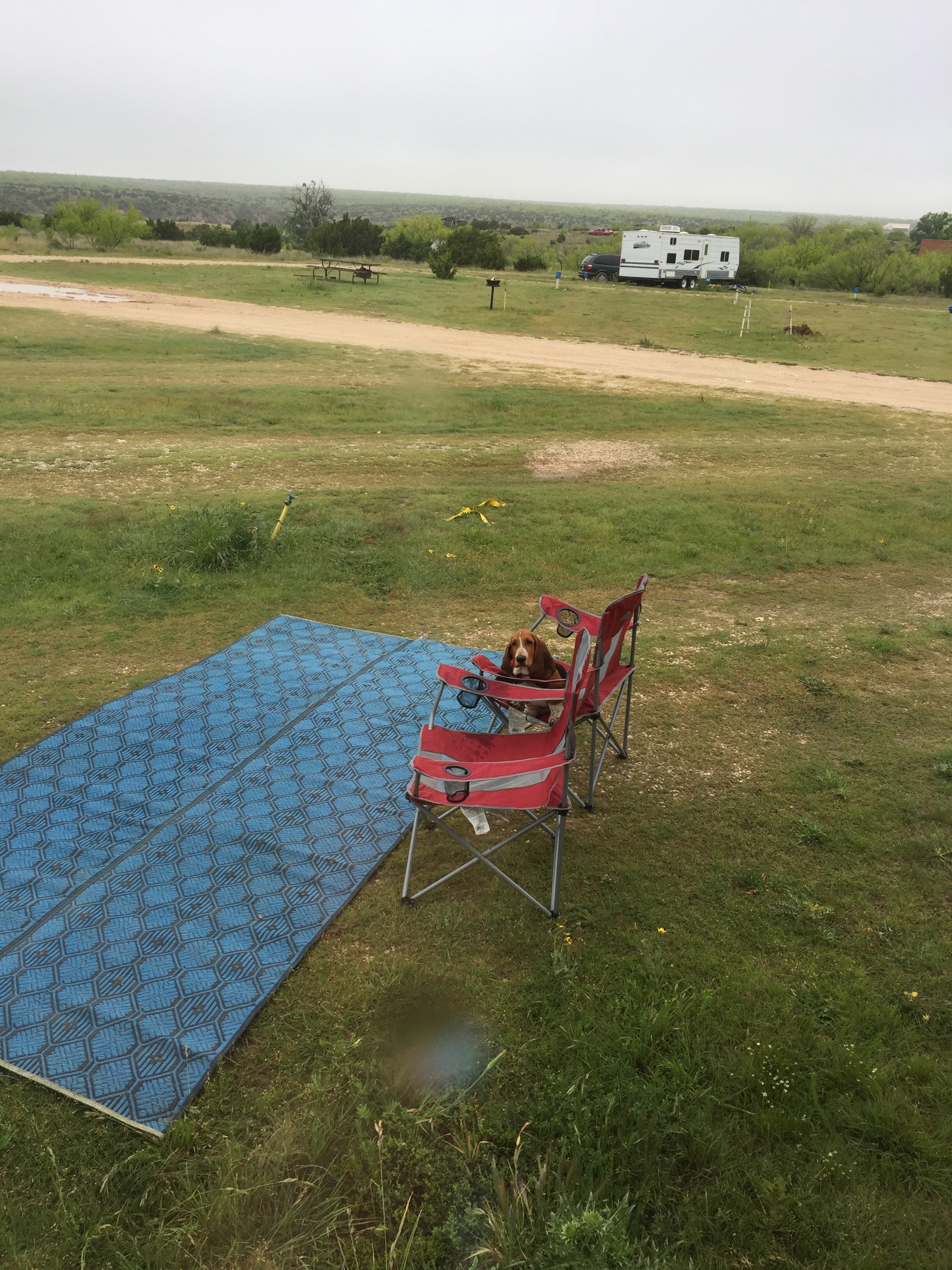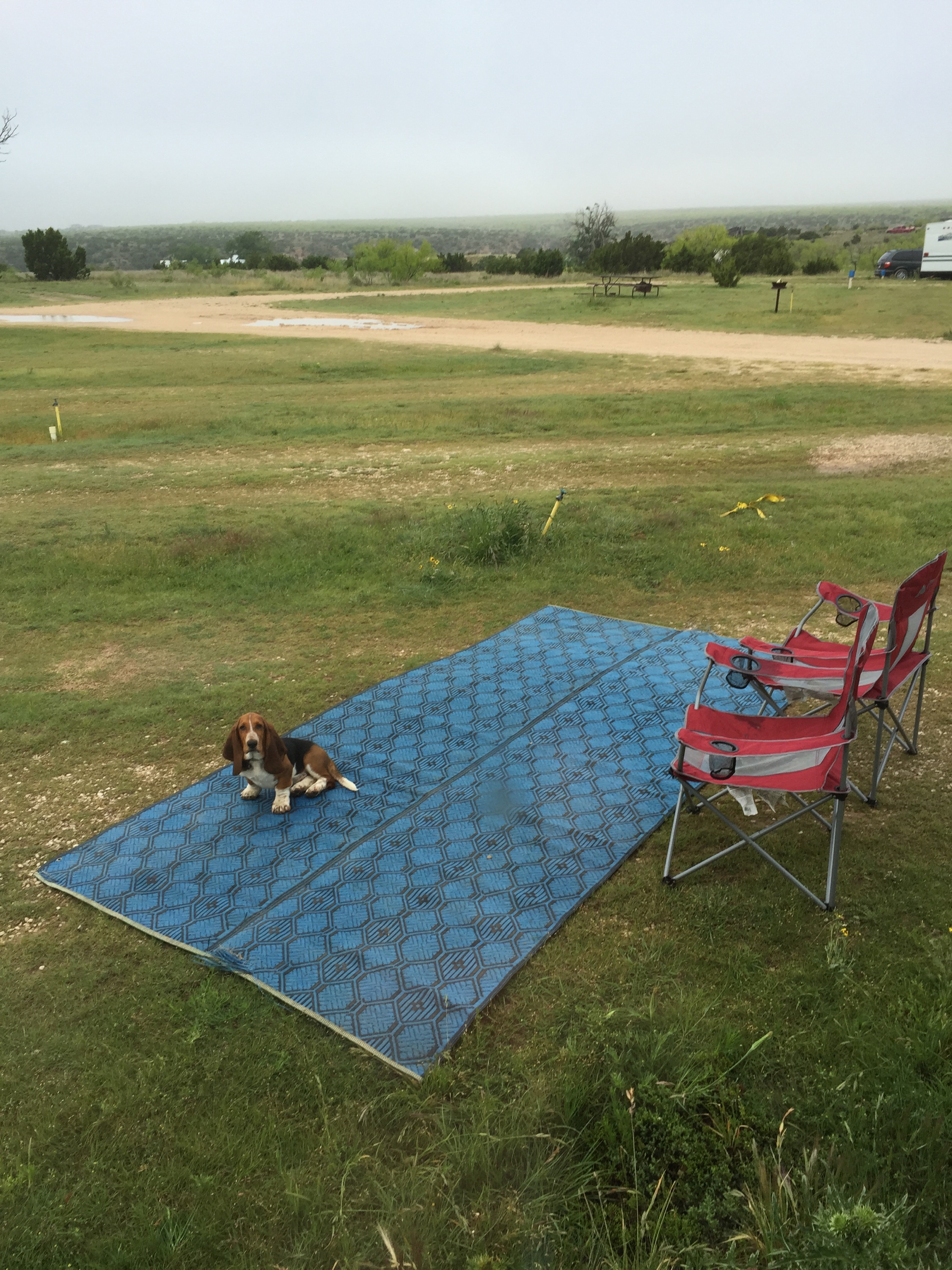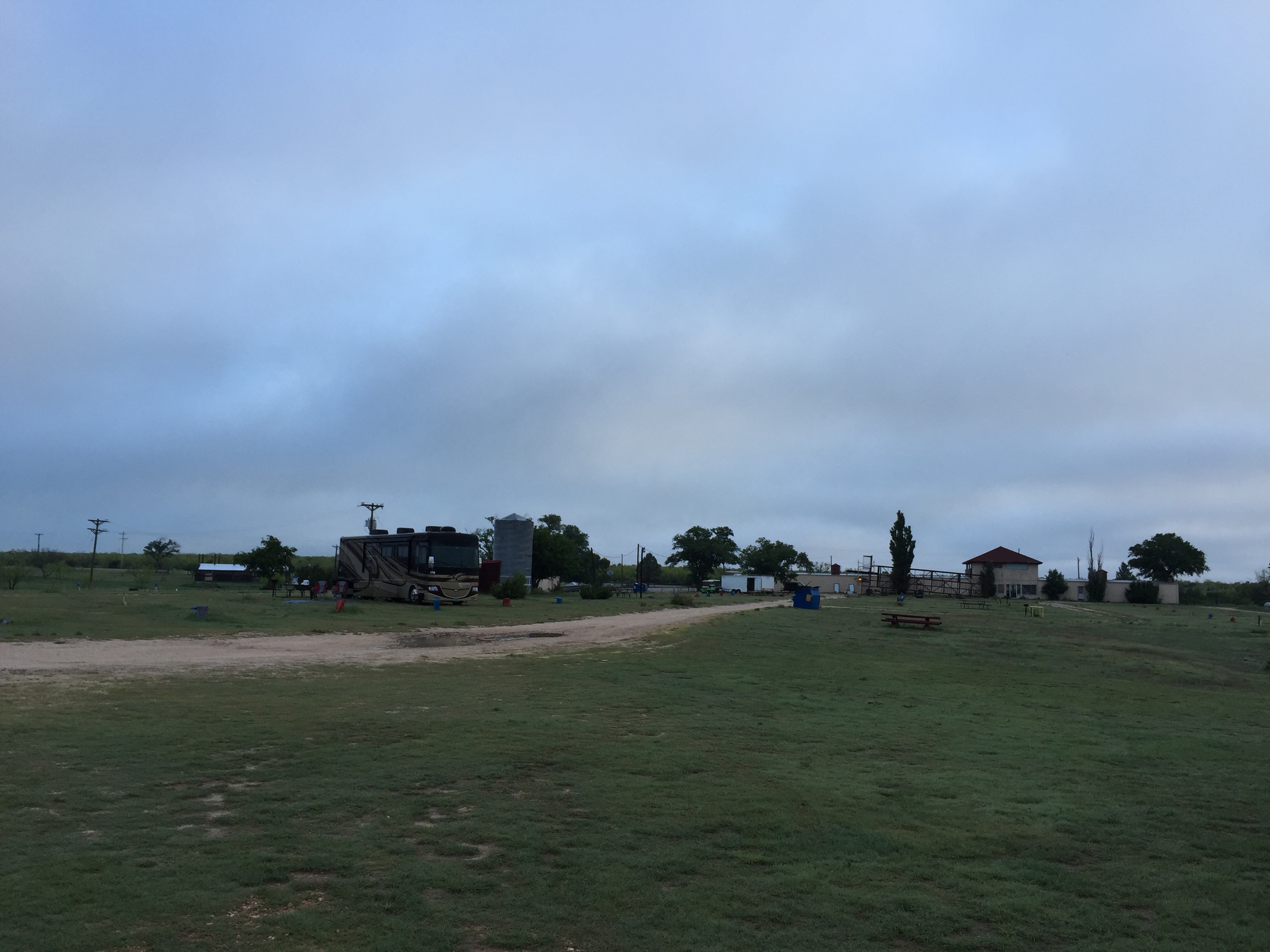 Dinner was good and safe for Zach π. Always a big worry at a new place! Then we were off to “the Grand Canyon of Texas!” When we pulled in Jason said something along the lines of “seriously?? This is where we are staying??” I reminded him of all of the reasons we chose this place (HIS ZIP LINE being #1!). And we went to check in. We will get pics tomorrow. Tonight we just wanted to get parked because it was getting dark. The guy told us to pick any spot with a red box, but to make sure we tested water and electric before we set up completely. If they didn’t work we should just move to another space. We had many options since the only other RV here is his! First spot had the fuse sitting on top of the red box so we knew we needed to move on. Once we got into the space me, the kids, and Lucky walked out the path to the edge of the canyon while J checked all of the amenities. Did I mention we had the equivalent of the Gornikees in dog version here? The owner’s beagle was all over us. Zach had to hold it while we parked because it kept running at us!