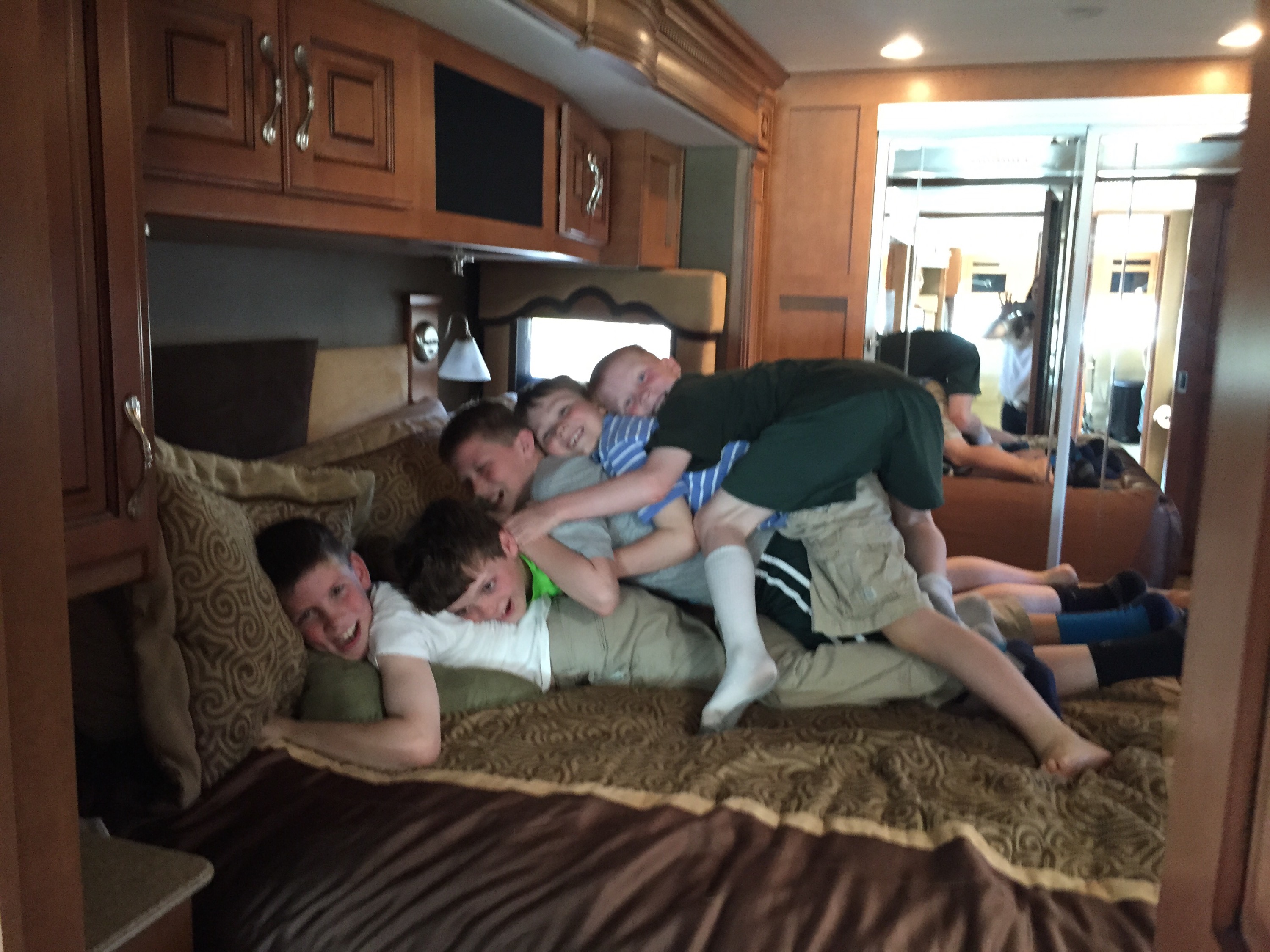 Dad has brought 3 caterpillars into the RV in the first day at McCormick’s Creek State Park! The caterpillars are all over. They are on the playground and a lot of other places. Daddy brought one in on his shoe. Then one on his shirt. The last one we aren’t sure about but we KNOW it was him.